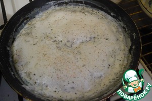 Сливки 150 мл налить на сковороду где жарилась курица, добавить базилик и прокипятить 3 минуты.