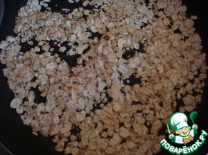 3/4 стакана овсяных хлопьев немного обжарить на сухой сковороде.