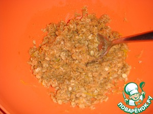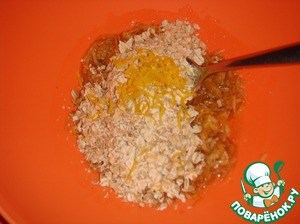 Добавить обжаренные хлопья и цедру лимона в медово-яблочную массу. Перемешать.