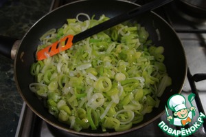Подготовить продукты для начинки. Порей очень тщательно промыть, нарезать колечками и снова промыть (между листьями порея может прятаться песок), обсушить.