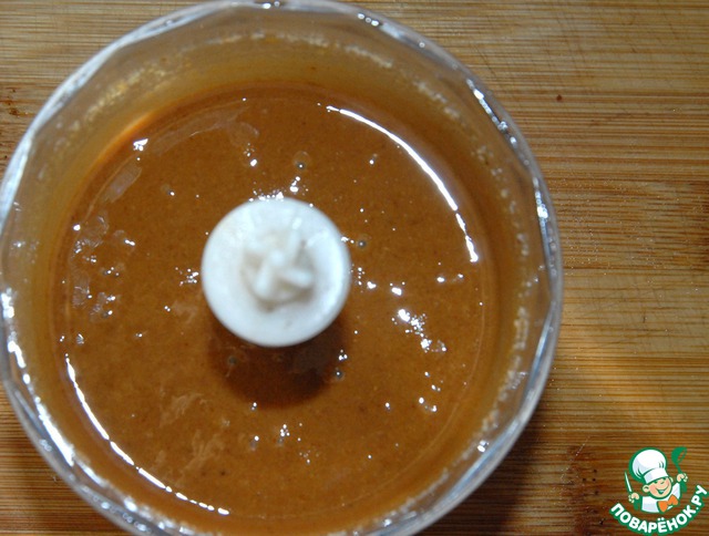 Орехи с 3 ст. л. сахара и растительным маслом измельчаем в однородную пасту.