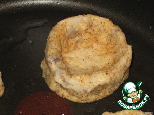 Руки смочить в холодной воде (чтобы пюре не прилипало), брать небольшое количество пюре, сделать небольшую лепешку, обвалять в панировочных сухарях и сформировать «гнездышко», положить на противень, смазанным маслом.