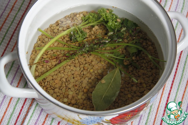 .. для варки чечевицы - воды добавьте где-то на 2 пальца выше уровня зерен (на каждой упаковке стоят пропорции воды и чечевицы, поскольку продукция может быть разная), эта вода не указана в рецепте.