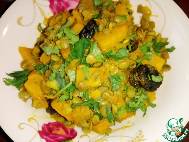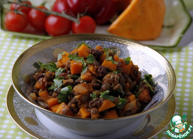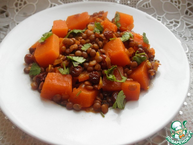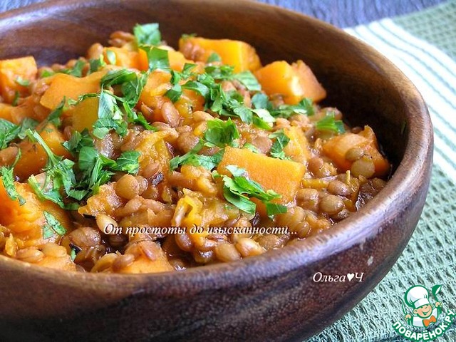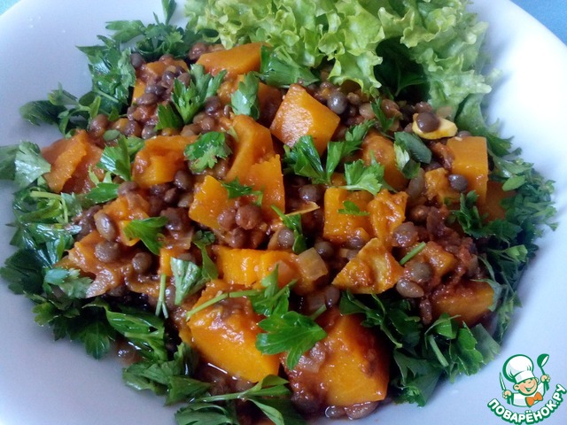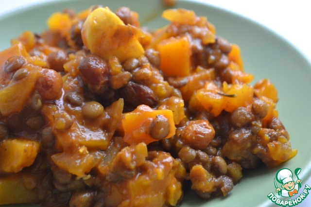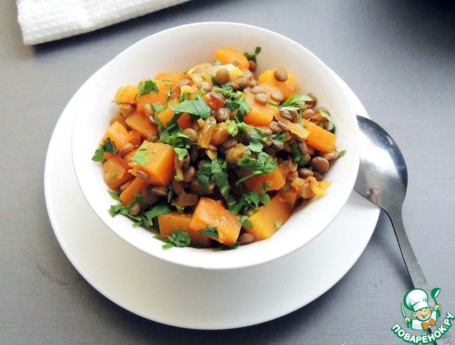 Рецепт «Карри из зелёной чечевицы и тыквы»: