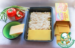 и выкладываем слоями листы лазаньи и приготовленный соус. -