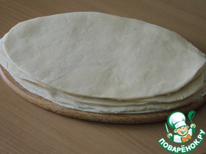 Делаем тесто для листов лазаньи - смешиваем муку, яйца, воду и масло. Раскатываем тесто в тонкий пласт, вырезаем листы нужной формы. У меня овальная форма для выпечки, поэтому я воспользовалась подходящей по размеру разделочной доской как трафаретом.