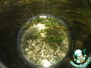 В кастрюле на разогретом оливковом масле обжариваем чеснок и пару веточек тимьяна - недолго, буквально минутку!