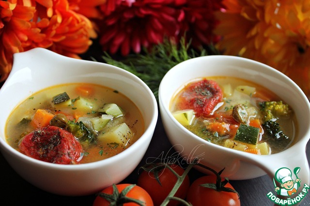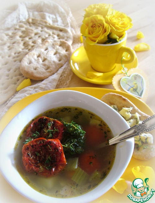 Минестроне, наряду с тирамису и спагетти - это визитная карточка итальянской кухни. Насыщенный, ароматный, легкий суп заряжает бодростью и отличным настроением буквально с первой ложки! А вяленые томаты добавят горячего итальянского солнца в нашу кутающуюся в теплый шарф весну...