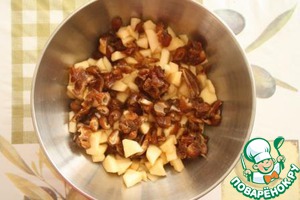 Яблоки (предварительно очищенные) и финики нарезаем на небольшие кубики.