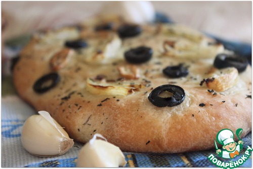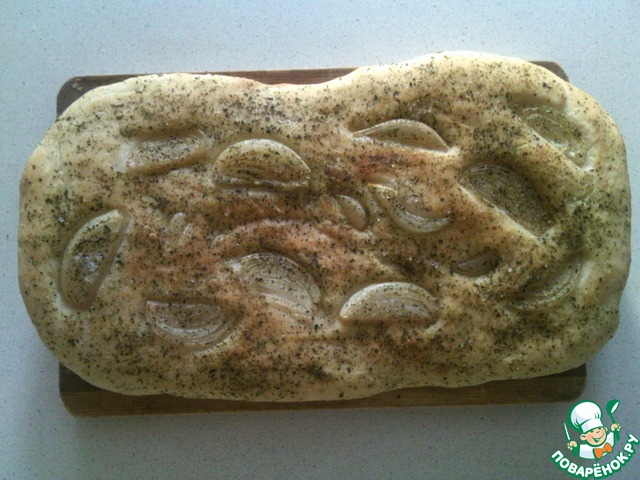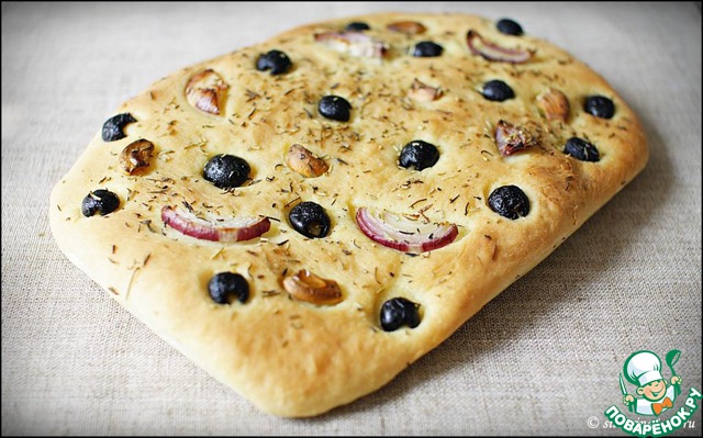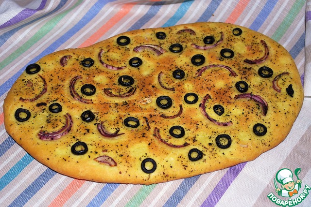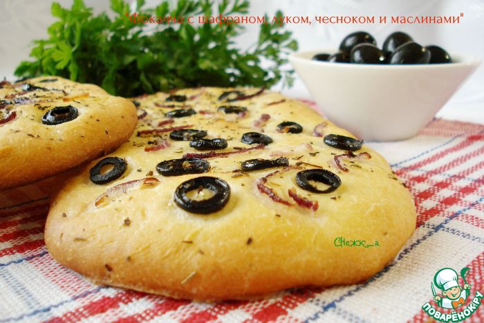 Рецепт «Фокачча с шафраном, луком и маслинами»: