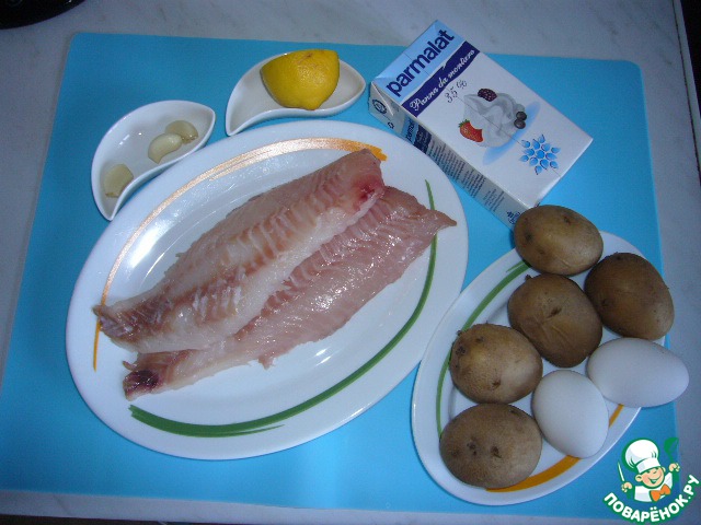 Ингредиенты для «Запеканка с рыбой под сливочно-сырной корочкой»: