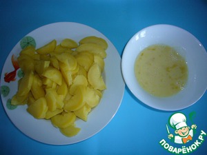 Картофель нарежьте ломтиками, яйца взбейте вилкой.