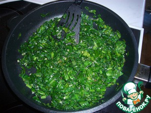 На небольшом огне, при постоянном помешивании, протушите 3-4 минуты. Приблизительно до того вида и объема, как на фотографии.