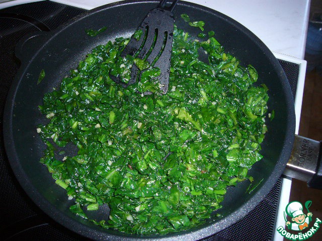 Добавьте шпинат, посолите, поперчите, приправьте мускатным орехом.