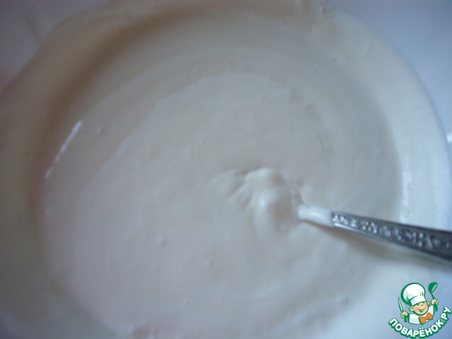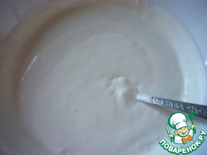 Взбить блендером сливки до крепких пиков и соединить их с яйцами.