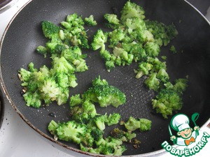 Выкладываем чеснок и брокколи на сковороду, обжариваем несколько минут