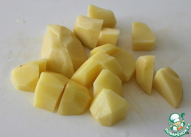 Готовое мясо вытащить, остудить и нарезать крупными кусками.