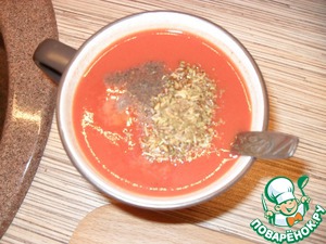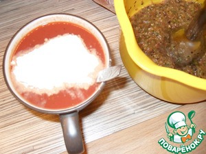 Берем небол. чашку, наполняем её отваром от нашего коктейля и добавляем томат. пасту