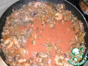 Ингредиенты для «Паста с морепродуктами в томате»: