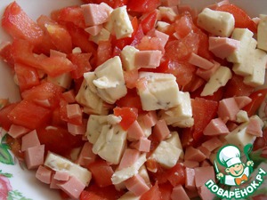 Тем временем, нарезаем начинку. Сначала томаты