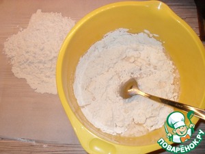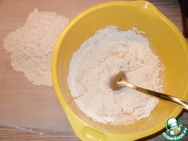 Далее просеенную муку постепенно добавляем в нашу смесь. Сколько возьмет.