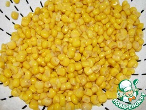 Кукурузу откинуть на дуршлаг, чтобы жидкость ушла.