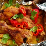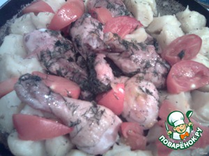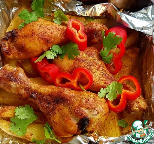 Рецепт «Румяные куриные ножки с картофелем и помидорами»: