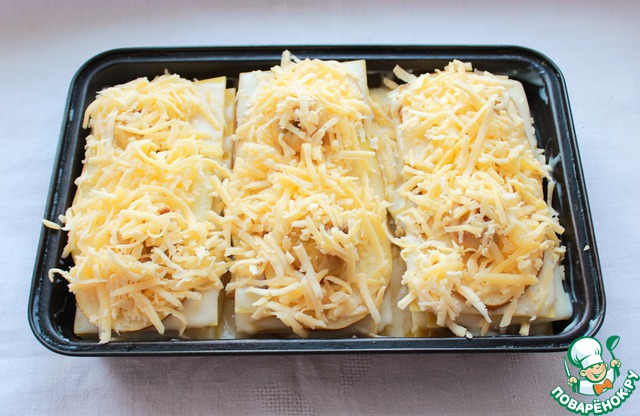 Сыр при желании можно немного добавлять внутрь лазаньи.