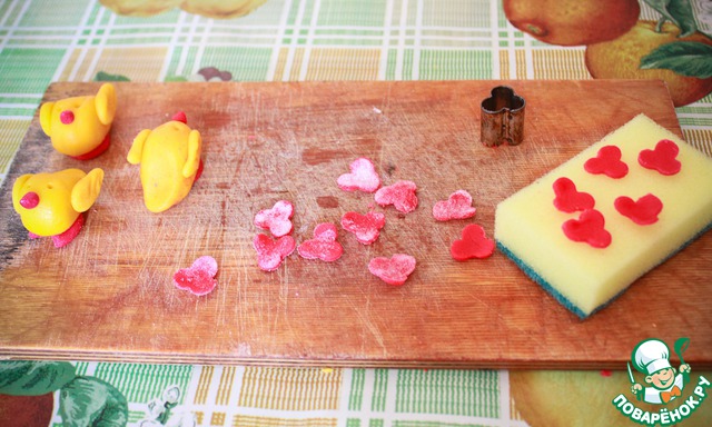 • Пока лазанья запекалась, решила слепить весенний декор для оформления из сахарной пасты, была готовая в холодильнике.