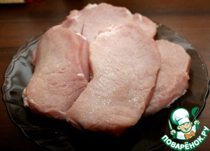 Мясо моем, режем на порционные кусочки (я один стейк порезала на 2 части), отбиваем