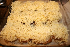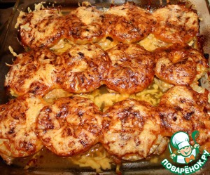 После ананасиков-сыр и заливаем вином. Отправляем в разогретую духовку при 180'С на 45 минут.