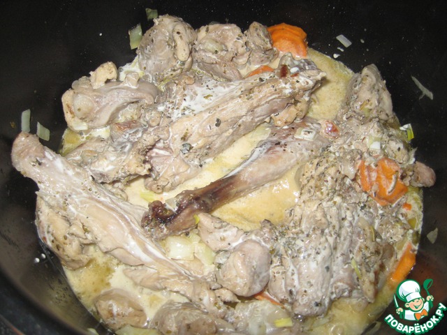 Нежнейший кролик с зеленым горошком в сливочном соусе-что может быть вкуснее? :-) Сегодня я предлагаю Вам рецепт кролика в мультиварке, который подойдет и для духовки