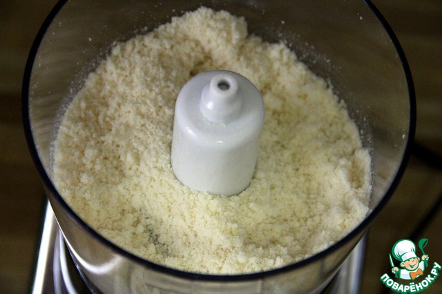 Порезать чеснок и измельчить с пармезаном в кухонном комбайне.