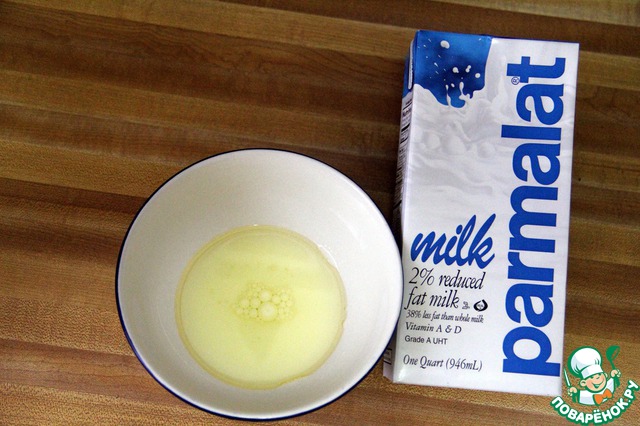 Смешиваем 1 ст. л. масла и 1 ст. л. молока.
