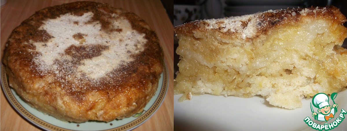 Яблоки она не терла, а порезала пластинами и красиво уложила, поэтому мы пирог не переворачивали "вверх ногами")
