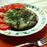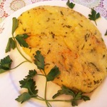 Подлить оставшееся оливковое масло и обжарить пирог с другой стороны (пирог легко соскользнёт с тарелки в сковороду).
