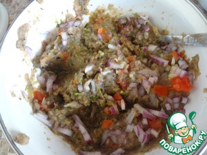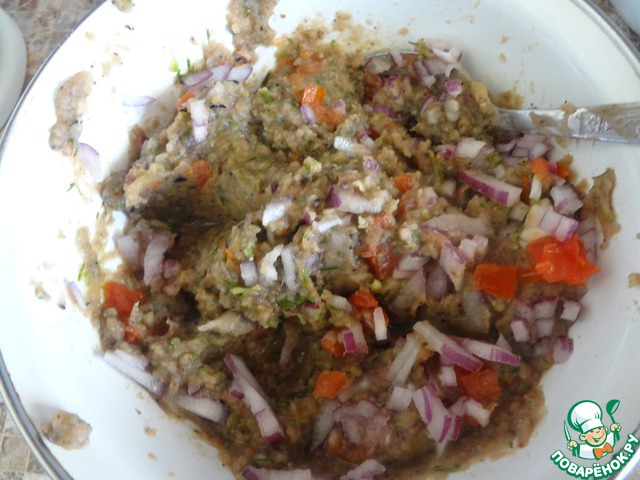 Выложить дип из блендера в чашку и добавить туда мелко нарезанный лук, оставшиеся помидоры без зёрнышек и молотую зиру. Посолить и поперчить по вкусу. Перемешать и убрать в холодильник.