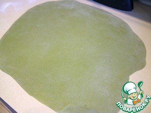 Отдохнувшее тесто раскатываем тонко. В процессе нужно подпылять его мукой.