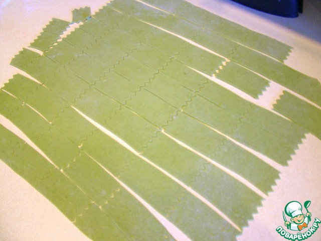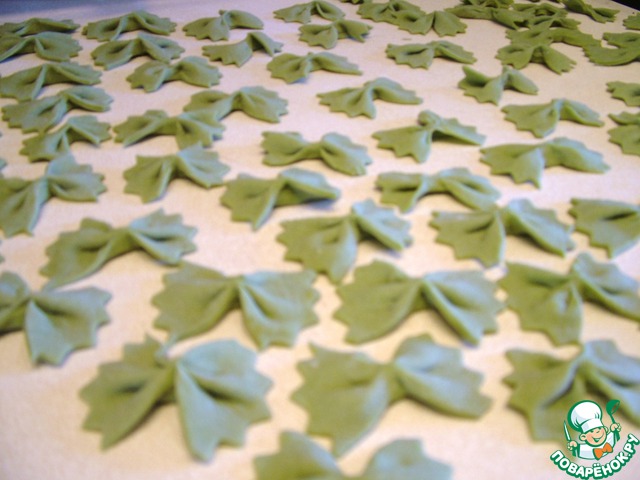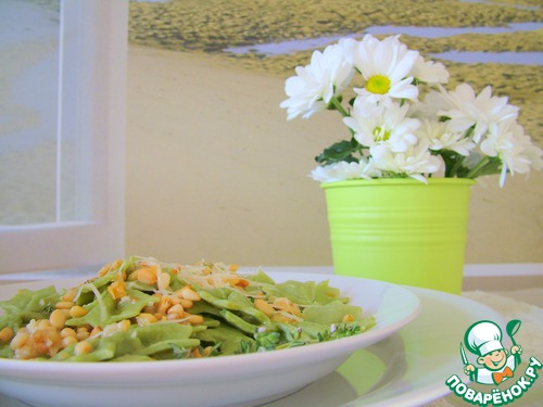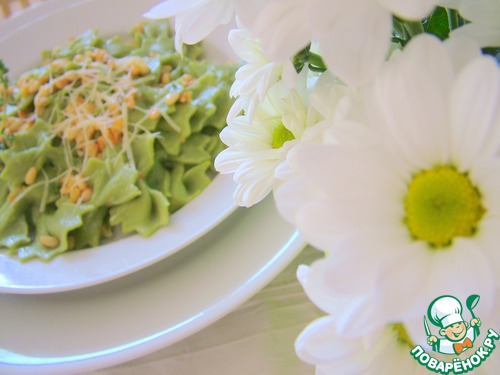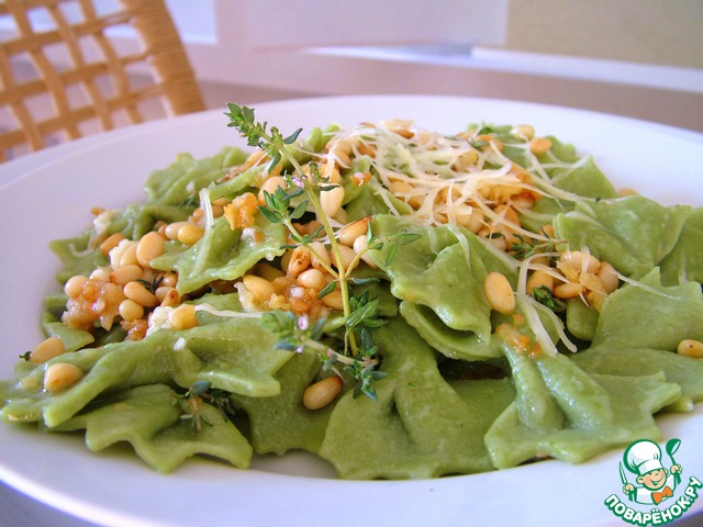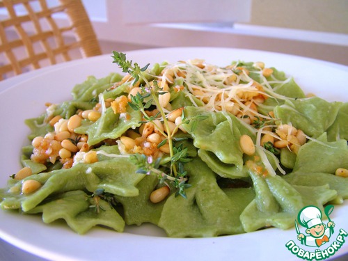 Рецепт «Домашние зеленые фарфалле с печеным чесноком и кедровыми орешками»: