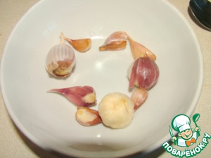 Пока паста варится, запекаем чеснок в микроволновке в течение 1,5 - 2 минут.