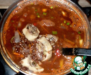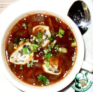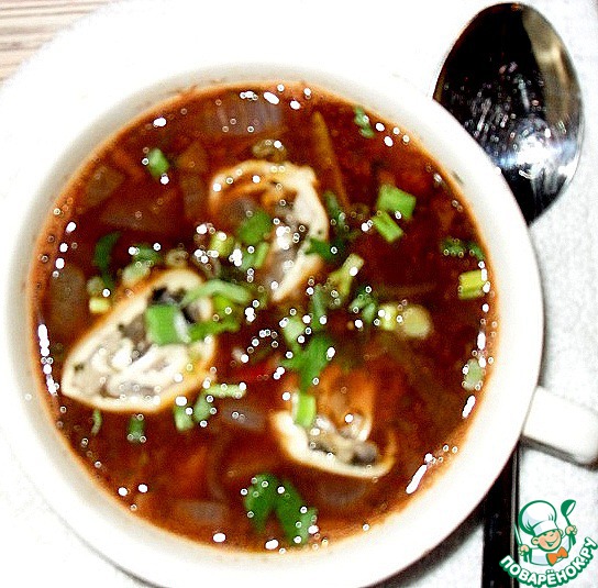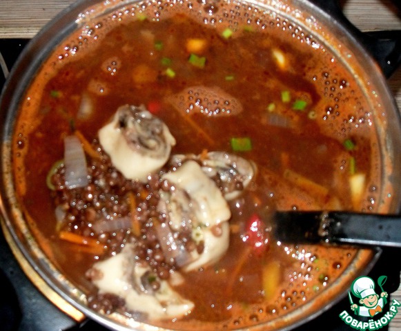 Рецепт «Чечевичный томатный суп с грибными рулетиками»: