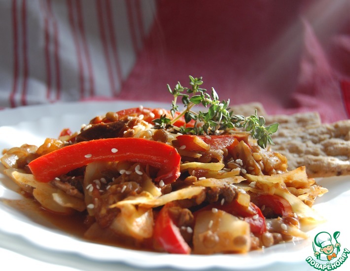 Рецепт «Капуста с грибами, помидорами и зелёной чечевицей»: