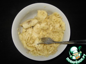 Приступаем к "мокрому". Бананы разминаем вилкой в пюре.