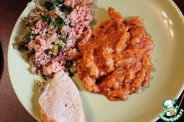 Это блюдо очень просто и быстро готовится из мякоти индейки, курицы или других кусочков-"обрезков" мяса, в очень-очень вкусном соусе, за очень короткое время. Рассказывать байки долго не буду, заходите и пробуйте... Результат данного рецепта меня просто покорил скоростью, простотой и вкусностью! Очень понравилось всем, от мала до велика.
