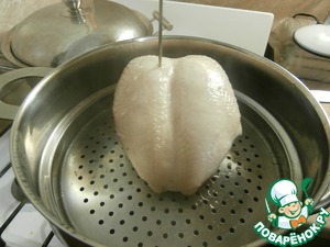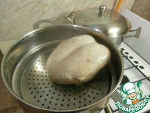 Куриную грудку тщательно промываю проточной водой и кладу в пароварку на 40 минут.