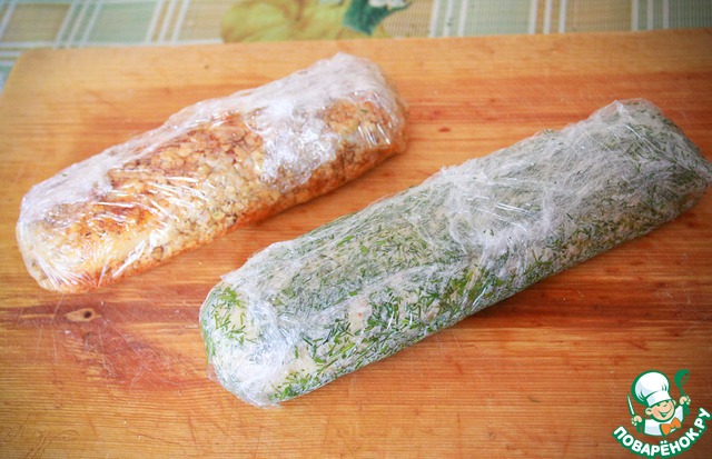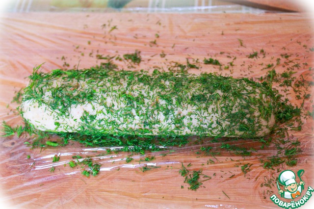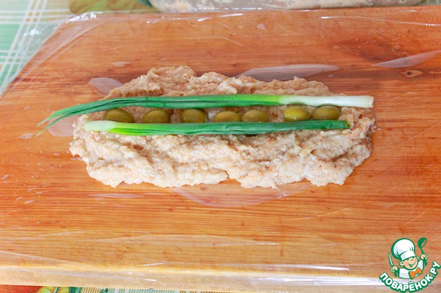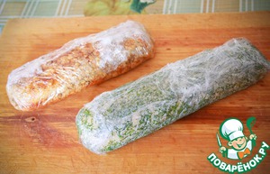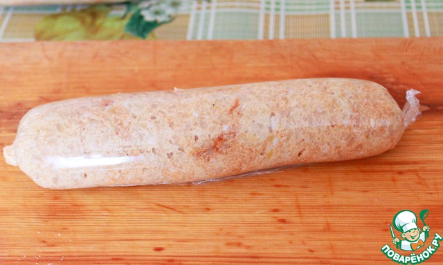 Заворачиваем колбаску в плёну и формуем колбаску.