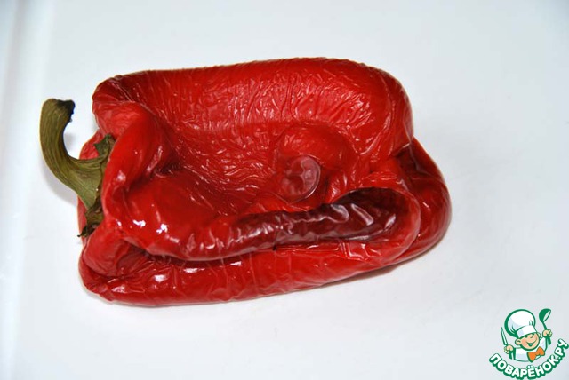 Предварительно запекаем красный болгарский перец в духовке 30 минут при 200 градусах.