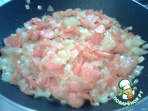 • Лук и морковку нашинкуйте и обжарьте на растительном масле