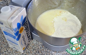 Всыпать просеянную муку с разрыхлителем и перемешать до однородности.