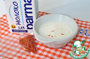 Молоко нагреть до 40 градусов и всыпать шафран, дать настояться.